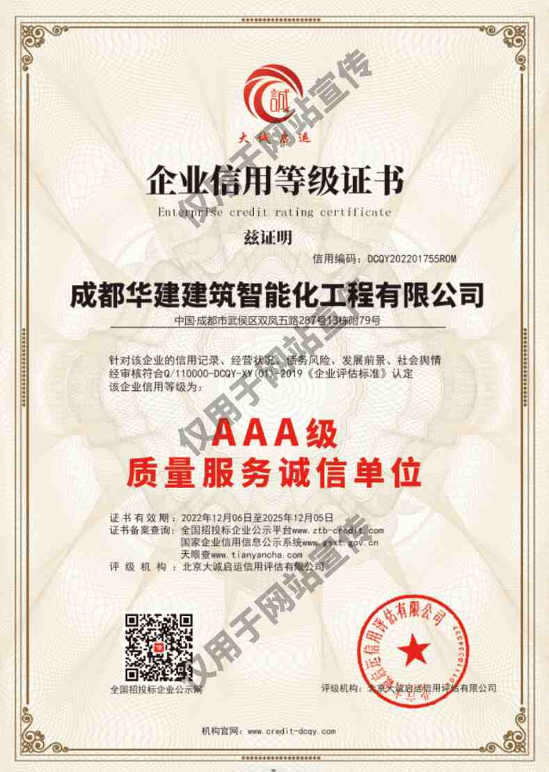 成都華建建筑智能化工程有限公司,19年專注弱電智能化工程、消防工程、建筑機(jī)電安裝工程的專業(yè)公司,具備電子與智能化工程、消防設(shè)施工程、建筑機(jī)電安裝、建筑裝修裝飾、建筑智能化設(shè)計(jì)等相關(guān)30余項(xiàng)資質(zhì)及證書(shū)。設(shè)計(jì)、施工和維保一站式服務(wù),多行業(yè)中大型成功交付案例。…